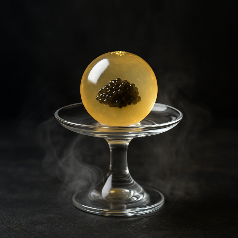 Champagne Gelée Orb with Caviar Core and Lemon Vapor